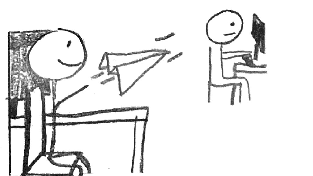 I remembered how, as a kid, getting messages used to be a fun, anticipated occurrence. Sneaking notes or paper airplanes behind the teacher’s back was a satisfying accomplishment. What if you could capture this atmosphere in the office?