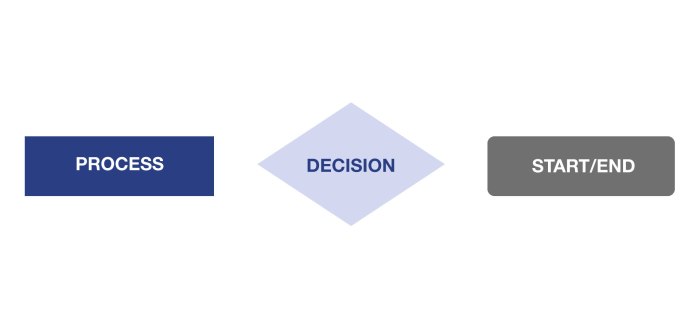 - Assign each task to a corresponding symbol category. Is something a process a user must do? Is it a decision they must make?