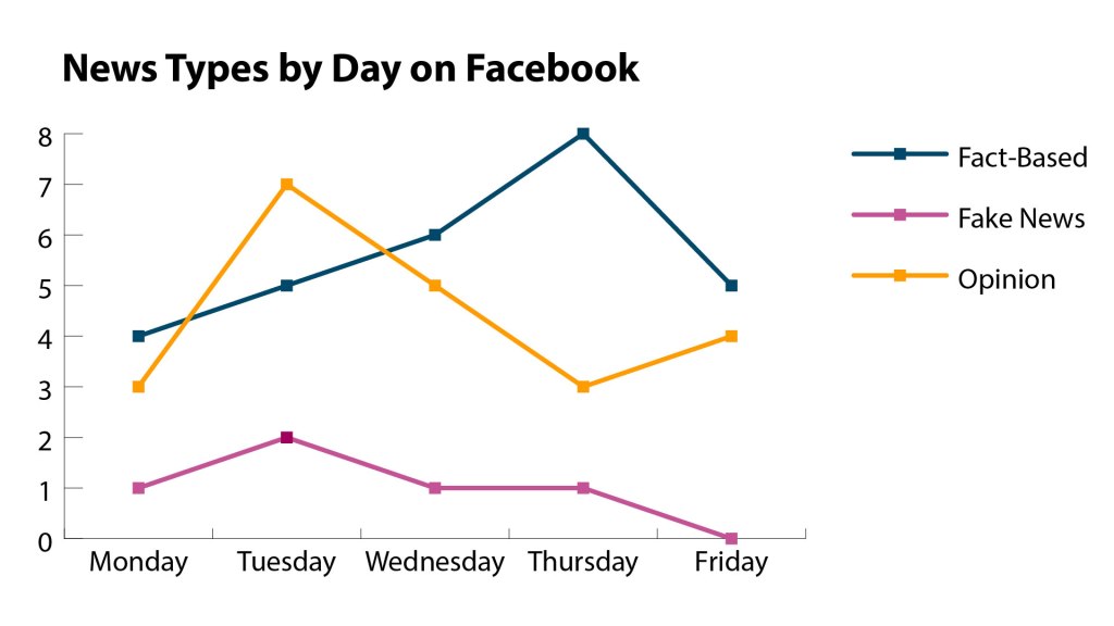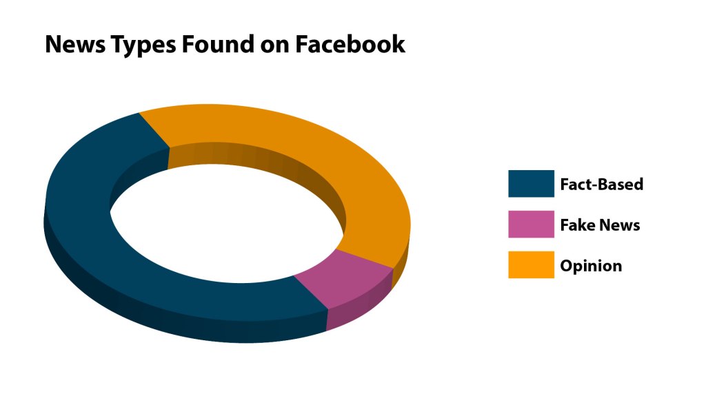 For the purpose of this exercise, I defined fact-based content as social media posts which linked to news sources that could be fact-checked and proven true. Fake news was the same criteria but fact-checking proved the sources misleading or false. Opinion refers to any post on the topic, factually correct or not, which did not link to or cite a source for the information it was providing or links clearly labeled opinion.