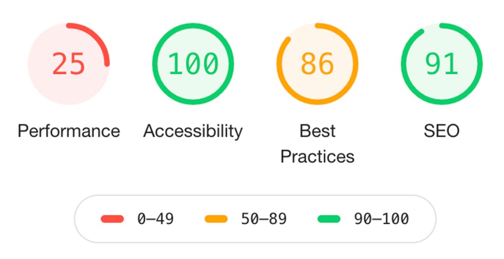 Surprisingly, Google Lighthouse ranked this website only 83 out of 100 for accessibility. Even though this site seems to outshine BroadwayWorld in terms of visual design elements, it still lacks some of the substance behind the scenes that’s needed to offer a good user experience for all