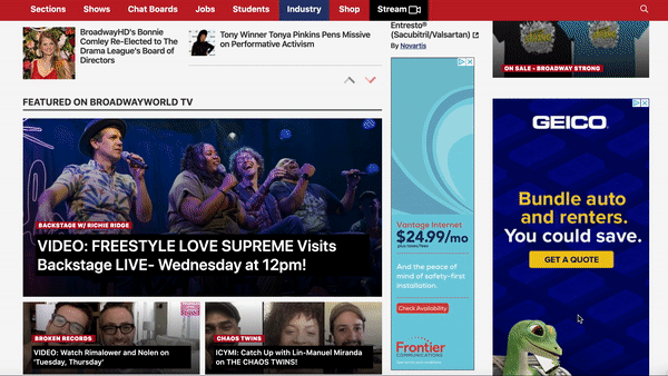 Subdomains feel a little more focused, but even then, they’re not laid out to prioritize their purposes. The Reviews section seen above, for example, has tiny thumbnail images for the actual review link that barely draw my attention while the less relevant Hot Stories links and BroadwayWorld TV links on the page have much more prominent images.