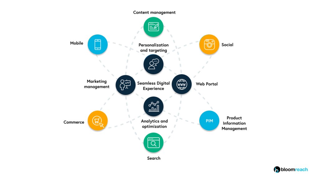 As the ever-growing integration of technology in our lives continues, though, there’s a new option on the horizon: digital experience platforms (DXP). These bundle CMSs with other tools like cloud hosting, workflow management, eCommerce functionality, and analytics, as shown above.