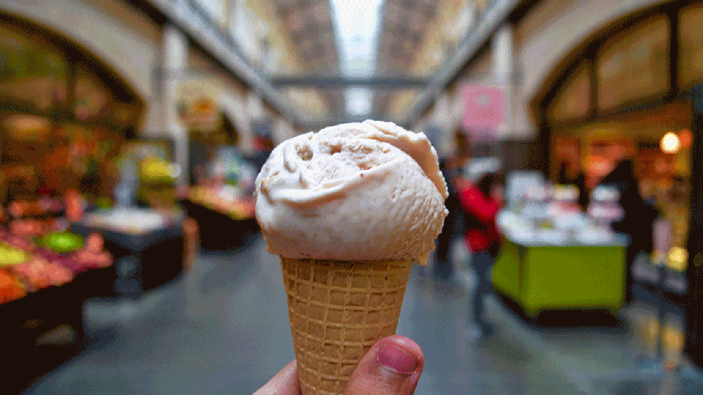 First, I went searching for royalty-free photos of ice cream. I settled on this one of a hand holding a cone from Unsplash. Then I had to find images with similarly shaped scoops that I could cut out in Photoshop and superimpose over the image. Since all the photos I selected were from different sources I had to do some resizing as well as editing of lighting and shadowing to make the scoops look like they matched the background photo.